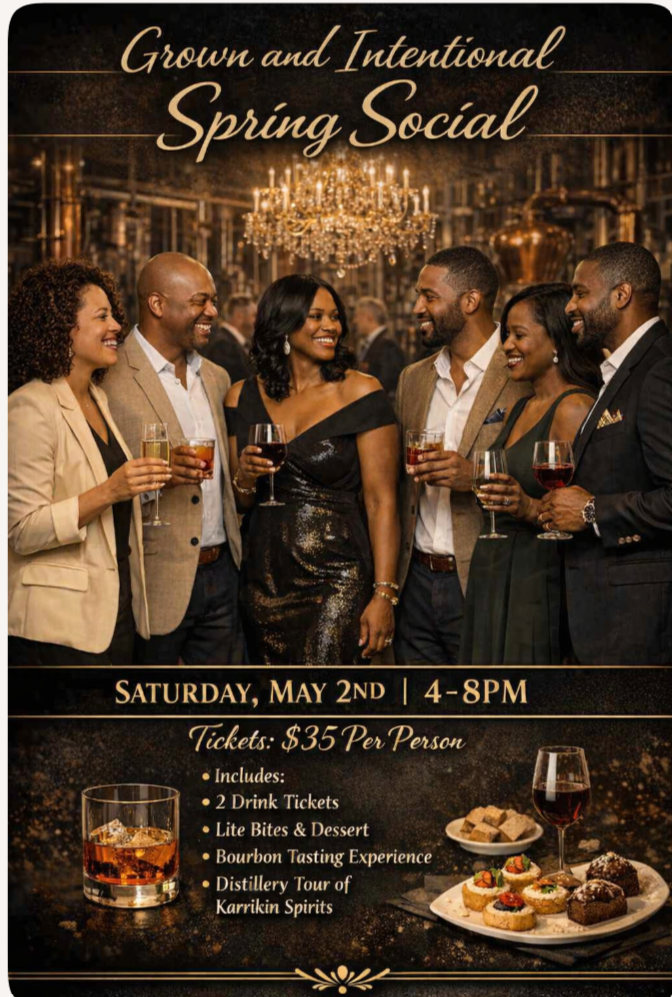 A relaxed, grown‑vibe evening to unwind, connect, dance, and network. Music • Vendors • Drinks • Bourbon Tasting • Distillery Tour Optional “Open to Deeper Connections” Bracelet — $5 Tickets: $35 (includes 2 drinks, lite bites, dessert, tasting + Karrikin Spirits distillery tour)